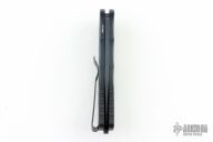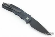 This TR-5 by Pro-Tech Knives features a black spear point blade. The handle has a black aluminum handle with fish scale milling patter, stainless steel backspacer with lanyard hole, tip up blade stainless steel clip.  Comes with original box and papers. Has some light scuffs, otherwise excellent condition. PR4 #602