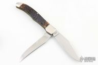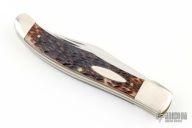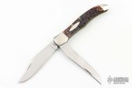 This trapper by Western Cutlery features satin finished blades with nail nicks. The handle has nickel silver bolsters, jigged covers, brass liners and stainless steel springs. Has some light scuffs and scratches, great condition otherwise.
