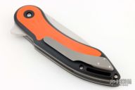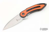 This Glimpse Linerlock Flipper by Todd Begg features a hand rub satin finished blade with flipper. The handle has black G-10 scales with orange G-10 inlays, bead blasted titanium liners and tip up clip, black G-10 backspacer. Rides on washers, nice detent, lockup and blade seating. Excellent condition.