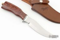 This knife from Colt features mirror polished blade with integral guard, .255" blade stock and 1.287" blade depth, hidden tang construction. The handle has a dymondwood grip with a brass tang nut with lanyard hole. Comes with original box and brown leather sheath. Has some light scratches, otherwise excellent condition.