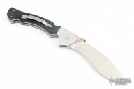 "The Rajah folders, designed by Andrew Demko, are big enough to approximate the feel and heft a fixed blade Kukri. Their broad, downward curved blades exhibit the best of a Kukri’s characteristics. First, their unique shape presents their thin, hollow ground edges at just the right angle so they naturally bite deep instead of bouncing or skidding off. And secondly their points are thick, wide and sharp enough to pierce even the toughest targets.