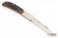This Eagle Classic 1005HJB Folder by Al Mar features a satin finished blade with nail nick. The handle has stainless steel bolsters and honey jigged bone scales, brass liners and stainless steel backspacer. Comes with original brown leather sheath and original box. Excellent condition. First Production #177 of 200.