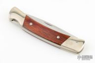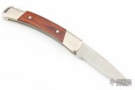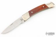 This Buck 501 features a satin finished blade with nail nick. The handle has nickel silver bolsters with integral liners, dymondwood inlays and a stainless steel spring. Comes with original leather sheath, box and papers. Excellent condition.