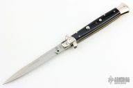This swivel bolster auto by Latama features a dagger blade with a false top edge. Nickle silver guard and rear bolster and Black Buffalo horn scales. Nice function, strong firing and lock up. Excellent condition.