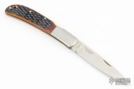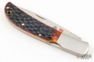 This Eagle Classic 1005HJB Folder by Al Mar features a satin finished blade with nail nick. The handle has stainless steel bolsters and honey jigged bone scales, brass liners and stainless steel backspacer. Comes with original brown leather sheath and original box. Excellent condition. First Production #142 of 200.