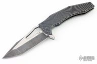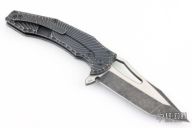 This SF Knife was deigned by Michael Gavac and made by Custom Knife Factory.  This knife features harpoon style blade with dark tumbled grinds and satin finished flats. The handle features a dark tumbled titanium frame with a matching tip up pocket clip.  Includes a padded zippered case and COA.  Excellent Condition.