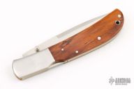 This Eagle Classic Talon Folder by Al Mar features a satin finished blade with false top edge and dual thumbstuds. The handle has stainless steel bolsters and cocobolo scales, brass liners and stainless steel backspacer. Comes with original brown leather sheath and box. Excellent condition.