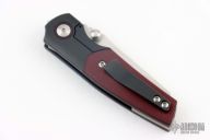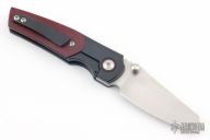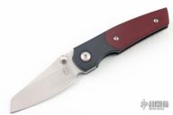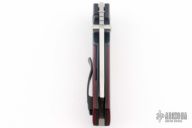 This Production Mini Barber by Berg Blades features a satin finished blade with notched thumbrest and dual thumbstuds. The handle has a black titanium frame with red micarta scales, titanium backspacer and tip up clip. Nice detent, lockup and blade seating. The blade and handle have been modified after market. Excellent condition.