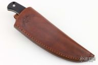 This Huck by Emerson Knives features a stonewashed blade with .125" blade stock and 1.328" blade depth, full tang construction with textured G10 scales. Comes with a brown leather sheath, Has a couple light scuffs excellent condition otherwise. #249.
