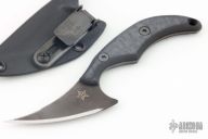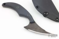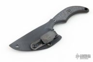 This fixed blade by JB Knife and Tool features a black blade with .062" blade stock and 1.306" blade depth, full tang construction. The handle has black G-10 scales. Comes with a kydex sheath. Has some light scuffs, otherwise excellent condition.
