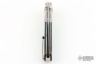 This Modern/Traditional blend offers everything you need in a blade – it’s made from Crucible S90V steel, which is renowned for its hardness and stain resistance properties; it has an integral titanium handle milled from 6AL4V Titanium, and its inlay is made of marble carbon fiber.