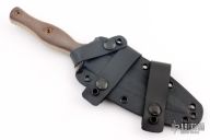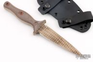 This Raider Dagger by RMJ Tactical and Osprey Knife and Tool features a cerakoted double-edged blade with fullers, .224" blade stock and 1.148" blade depth, full tang construction. The handle has micarta scales with, notches on tang of blade. Comes with a kydex sheath with belt loops. Comes with original box and papers. Excellent condition.
