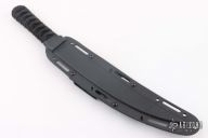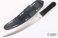 The Hisshou from CRKT features an upswept two tone blade with polished flats and hand rub satin grinds. The handle is comprised of Japanese style wrap over black leather and hidden tang construction. Includes kydex sheath. Has a couple light scratches, otherwise excellent condition.