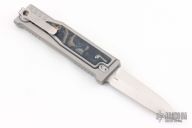 EXO-M Gravity knife. Double edged blade, titanium handle, burl linen camo micarta inlays. Comes with original box, and accessories. S/N 319 dated 06/2023. Includes the original box and papers. Has some scuffs, otherwise excellent condition.