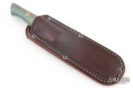 This Bravo-1.25 LT by Bark River Knives features a satin finished blade with .157" blade and 1.151" blade depth, full tang construction. The handle has Gray Tigertail Maple Burl, and mosaic pins. Marked #1 ( on the box ). Comes with a brown leather sheath and original box. Has some spots on the blade, otherwise excellent condition.