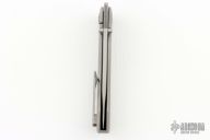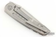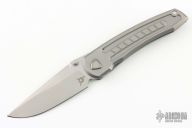 This Waka by Edison Barajas features a bead blasted blade with notched thumbrest and dual thumbstuds, can be front flipped. The handle has a milled and blasted titanium frame with matching backspacer and tip up clip with hidden screws. Has custom pivot. Rides on bearings, nice detent, lockup and blade seating. Comes with original box and COA dated 1-24. Excellent condition.