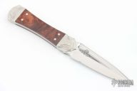 A native of Japan, Koji Hara was born in 1949 in Imari City, and is one of the most traveled of Japanese knifemakers, attending shows throughout his home country as well as over the United States and Europe. When he began making his first knives in 1988, they were his versions of Bob Loveless designs. Three years later he held a one-man knife show in Seki City, Japan, heart of the production cutlery industry. It was at this point in his career that he realized he had to make and sell knives of his own concept and design if he was going to succeed. In 1994 Koji had become a Probationary Member of the American Knifemakers Guild, and in 1997 a Voting Member. During this period he was participating in at least five American shows per year, and would soon be attending shows in Europe. Annually, this prolific maker attends two knife shows in Japan, in addition to having maybe two one-man shows, usually in smaller communities, where collectors don't visit the larger cities. He feels these small shows enable more and more people to become familiar with custom knives. He has received awards for his folders such as "Best in Show" and "Most Innovative" in several international knife shows. Koji primarily uses a powdered stainless steel known as Cowry-Y, made by Daido Steel in Japan, for his blades. It holds an excellent cutting edge and polishes to a high mirror finish. Although one of the drawbacks of powdered steel is its weakness towards lateral impact, this can be corrected through proper heat-treating. Koji also makes knives featuring ATS-34, D-2, 440C and other steel blades, based on customer preference. His preferred method of making blades is via stock removal. A folder specialist, he often carves the handle material into a terraced landscape to feature his classic "Air-Step" design.
