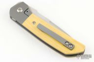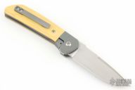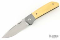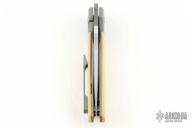 This Mula Front Flipper by Enrique Pena features a hand rub satin finished drop point blade with swedge, notched thumbrest and front flipper. The handle has a blasted titanium frame with richlite scales, and a tip up bead blast finish clip. Nice detent, lockup and blade seating. Comes with zippered case. Has a dent on the scale on the pommel and a couple light scratches, excellent condition otherwise.