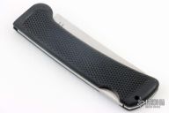 This Cold Steel Lockback has a satin finished tanto blade with a single nail nick. The handle features black rubber scales over steel liners and backspring. Excellent condition. Comes with original box, papers and black nylon sheath.