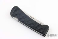 This Cold Steel Lockback has a satin finished tanto blade with a single nail nick. The handle features black rubber scales over steel liners and backspring. Excellent condition. Comes with original box, papers and black nylon sheath.