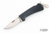 This Cold Steel Lockback has a satin finished blade with a single nail nick. The handle features black rubber scales over steel liners and backspring. Excellent condition. Comes with original box and papers.