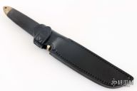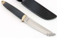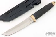 This Tanto by Cold Steel features a satin finished tanto blade with .182" blade stock and 1.123" blade depth, hidden tang construction. The handle has a brass guard and butt with rubber grip. Has a couple light scratches, otherwise excellent condition. Comes with original black leather sheath and box.