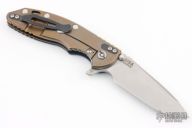 This XM-18 3.5" flipper by Rick Hinderer features a stonewashed blade with notched thumbrest and flipper. The handle has a stonewash titanium frame with a black G-10 scale, a tip up or down reversible titanium clip and filler tab, lanyard hole at the butt. Comes with original box, OD Green G10 scale and extra washers. Excellent condition.