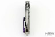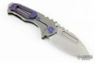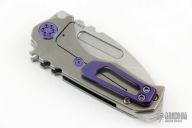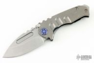 This Micro Praetorian from Medford Knife and Tool features a satin finished drop point blade with notched thumbrest and fullers. The handle has a stonewashed titanium frame with an anodized titanium tip up pocket clip. Stainless steel backspacer doubles as a glass breaker. Comes with original hard case and papers dated Feb 16, 2022. Excellent condition.