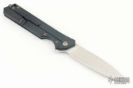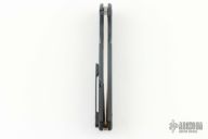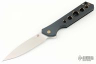 This Rainmaker by Olamic Cutlery features a satin finished drop point blade with a notched flipper. The handle has a black Gunkote titanium frame with matching titanium tip up pocket clip and anodized titanium floating backspacer. Nice detent, blade seating and lock up. Includes original zippered case and COA dated 6-19-19. Has a couple light scuffs, otherwise excellent condition.