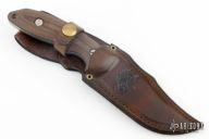 Born with a passion for the great outdoors and touched with passion of the old west comes our new fixed blade hunting/utility knife The Emmett. Released just in time for fall hunting it will prove to be your most trusted hunting companion ready for any tasks put before it. The pedigree for The Emmett comes from the popular FXM but as those familiar with the FXM will note that he is a completely different character. The stout .165” thick blade of CPM20CV starts at the handle in a wide 1.25” perfect for that slicing grind angle. The blade shape is a long “Bowie” style clip with a extra concave thumb rest set in the perfect spot for those hard push cuts. The clip point style front end allows for those fine cuts utilizing the nimble tip of the blade. The handle follows the style of the iconic XM-18 series of folders with its very ergonomic profile that begs this knife to be used for long periods of time. With the addition to the Emmett line we added contoured handles that fill out your grip comfortably while adding eye-popping appeal. And finally finishing off the grip is perfectly situated fine thumb jimping ensuring a solid grip while using the knife in a fencing grip. For the Emmett we again chose Woodland Harness for a exceptional leather sheath. The Emmett is that knife and hunting companion that is worthy of handing down through generations of outdoor enthusiasts!