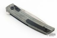 F22 KickStop Flipper Knife, Machine Satin Blade, Black Micarta Handles,Option 2 Black PVD Accents