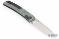 This F22 was designed by Jared Oeser, manufactured by Reate Knives and features Lee Williams Kickstop.  This knife features a satin finished blade with a notched flipper tab.  The handle has black micarta scales with a pvd coated titanium backspacer, tip up pocket clip and escutcheon. The knife opens with the use of Lee Williams' Kick Stop flipper.  Includes the original box. Excellent condition.
