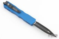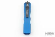 This Dirac OTF automatic by Microtech features a D/E black blade with a standard edges. The handle has a blue aluminum with stainless steel tip down clip and hardware. Serial number 5371 and dated 06/2020. Comes with original box and papers. Has some light scuffs, excellent condition otherwise.