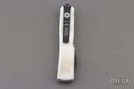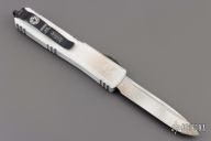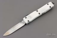 This Sand Trooper Ultratech OTF by Microtech Knives features a s/e distressed white cerakoted blade with a standard edge and a distressed white cerakoted aluminum handle. Black stainless steel clip. Glass breaker. Serial number 564 and dated 06/2023. Comes with original box and papers. Excellent conditon.