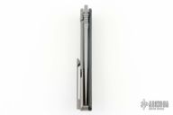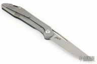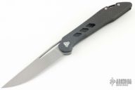 This Smoke CM1 from Boos Blades, features a gray drop point blade with elongated thumbhole and flipper. The handle has a carbon fiber scale and titanium frame with a matching tip up clip and backspacer. Nice detent, lockup and blade seating. Has a couple light scuffs, otherwise excellent condition.  Comes with original box and papers.