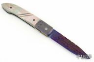 "My name is Peter Martin and I have been making knives for over 20 years and I'm a voting member of the Knifemaker's Guild. Sold my first knife in 1988, started hand forging steel in 1989, and my own Damascus in 1992. I believe in sole authorship and I stand behind my knives 100%.All of my knives are handmade 1 at a time. Forge welding the damascus billets, patterning and shaping the blades is performed solely by myself to ensure the finest quality control. I've spent a lot of time and resources researching and testing for proper heat treatment of my blades and I can guarantee that they are heat treated to perform to the best of their abilities for which they were intended. I select only the best natural handle materials available at the time. I have no "get by" factor. It's either the very best or it's not used. My knives, are just that, made by me down to the smallest detail. On occasion I will allow other qualified artists to perform engraving or scrimshaw work on my knives."