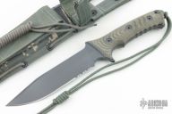 "Continuing the proud tradition of Chris Reeve Knives honoring elite military, the Reeve/Harsey collaboration - the Pacific - is the civilian version of a knife created to celebrate the 50th Anniversary of 1st Special Forces Group. Based in Ft. Lewis, WA, 1st Group's theatre of operations is Asia and the Pacific, so the name Pacific has been chosen to honor the home and work place of these fine soldiers." Comes with camo nylon spec-ops sheath. Comes with original box and papers dated March 6, 2008. Excellent condition. Blade Signed by William Harsey 2008