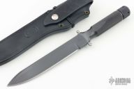 This Nkonka one piece knife from Chris Reeve Knives features a 1/4" blade thickness and 1 1/4" blade depth. KG Gun-Kote blade coating. Includes full size screwdriver kit encased in the handle. The one-piece series of knives from Mr. Reeve has been discontinued, and these pieces are getting more and more difficult to find. Comes with original box, sheath and COA dated February 15, 2005. Has some scuffs, otherwise excellent condition.