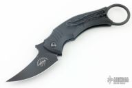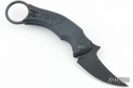 The Mako Folder is just as its name implies; a folding version of the PicoloMako. This is a tactically designed folder with a serious amount of utilitarian functionality thrown in. Instead of the traditional hawkbill blade shape, you find a karambit design, this one has an upswept shape with a poor man's wave feature machined into the thumb ramp. This protrusion gives you the ability to draw and open the blade in one quick motion and also for pressure point control (think Yawara stick) that also can be utilized as a non-lethal striking device. The 2.6" blade is made from N690Co stainless steel with a black PVD stonewashed finish. It can only be opened with the jimped protrusion tab as it does not have thumb studs or a flipper. The extremely ergonomic handle is made from nicely textured black FRN with a reversible pocket clip and one-inch diameter pinky ring for maximum security during use. It is manufactured by Fox Knives in Italy, designed in collaboration with Doug Marcaida and Funker Tactical.