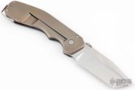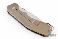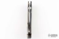 This Razel from Jon Graham features a satin finish blade with knurled thumbdisc, and notched blade spine. The handle is comprised of an anodized and textured titanium frame with a red carbon fiber scale, over a carbon fiber backspacer. Orange peel finish titanium pivot and tip up tail clip. Blade favors the right side slightly. Nice action and detent. Has a couple light scuffs, excellent condition otherwise.