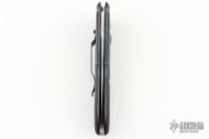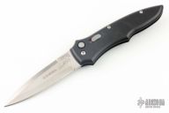 This Cobra side-opening automatic is from the custom series and features a hand ground hand rub satin finished blade by Harold Corby. Coil spring. Sliding safety. Black aluminum handle with rubber inserts, tip down black stainless steel clip. #573 on the blade. Has some scuffs and scratches, great condition otherwise.