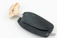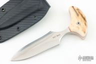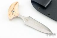 This push dagger by Mike Irie features a hand-rubbed satin finish double edge blade and mammoth ivory scales with red liners, .251" blade thickness and 1.171" blade depth. Excellent grinds. Great fit in the hand. Comes with kydex sheath. Excellent condition.