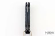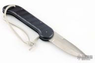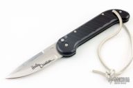This Black Knife features a satin finished spear point blade with swedge. The handle has a black anodized machined aluminum frame with a lanyard hole in the pommel. Has some light scuffs and scratches great condition.