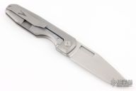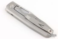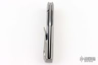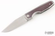 This Isotope by Vero Engineering features a hand rub satin finished blade with notched thumbrest and flipper. The handle has an integral tumbled titanium frame with red carbon fiber inlay, satin titanium hardware, tumbled titanium tip up clip. Nice detent, lockup and blade seating. Comes with a zippered case, COA, and extra marble carbon fiber scale. #268. Excellent Condition.