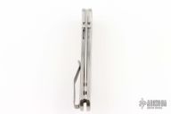 This Atom Linerlock by Three Rivers features a stonewash finished blade with dual thumbstuds. The handle has milled titanium scales, titanium liner with a titanium tip up reversible clip. Nice detent, lockup and blade seating. Comes with Three Rivers Manufacturing box, and papers. Excellent condition.