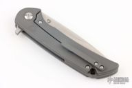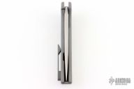 The Crux flipper from Ferrum Forge features a satin finished blade with swedge and flipper. The titanium handle has a bead blast finish. Pocket clip is positioned for tip up carry. The lockbar has a steel lockbar insert with overtravel stop. Blade is centered when closed, smooth flipping action. Comes with original box and zipper case. Excellent condition.