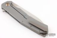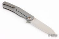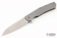 This Sierra from Burger Knives features a hand rub satin finished drop point blade with notched thumbrest and flipper tab. The handle is comprised of a bead blasted and milled titanium frame with titanium tip up clip and backspacer with lanyard bail. Includes a zippered case and COA. Excellent condition.