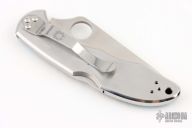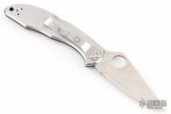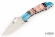 This Delica Lockback by Spyderco Knives has been fully customized by Brian Yellowhorse. This knife has a satin finished clip point blade with a thumb hole. Handle has a satin finished stainless steel frame with stainless steel back spacer (lock), and tip down clip. The spine of the knife has been file worked. The show side of the frame features a multi-piece scales. Includes a Spyderco box. Excellent Condition.