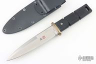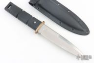 This Al Mar Tanken Scout Phantom has a satin finished spear point blade with sharpened top edge, .193" blade stock and 1.120" blade depth, hidden tang construction. The handle has a brass guard and black polymer handle. Comes with black kydex sheath. Has a couple light scuffs and scratches, excellent condition otherwise.