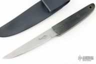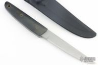 This Outfitter series kwaiken by Frank Vought features a bead blasted blade with .160" blade stock and .809" blade depth, full tang construction. The handle has black paper micarta scales. Comes with a kydex sheath. Has some scratches on the blade, otherwise great condition.